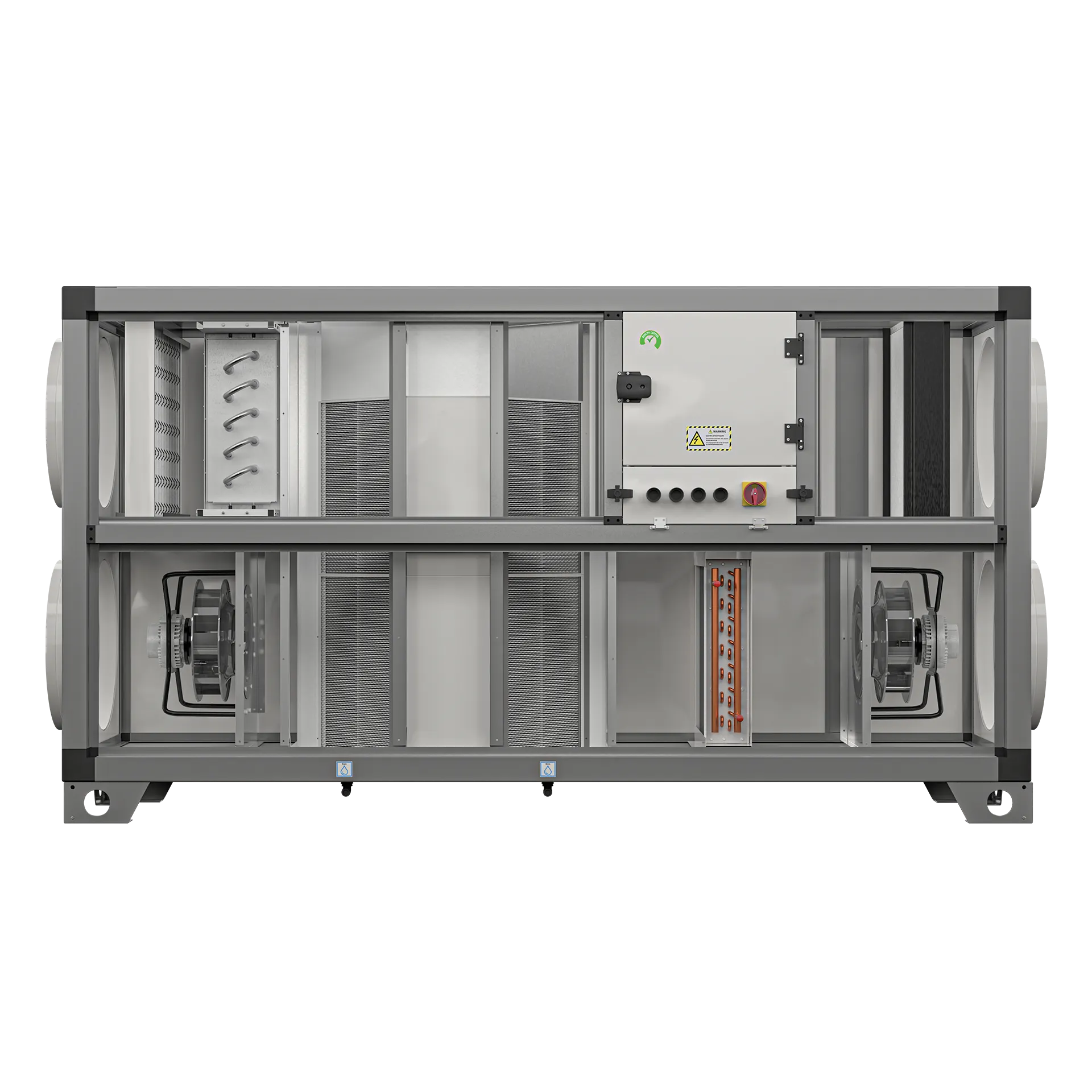 Optional electric or water preheating and reheating coils