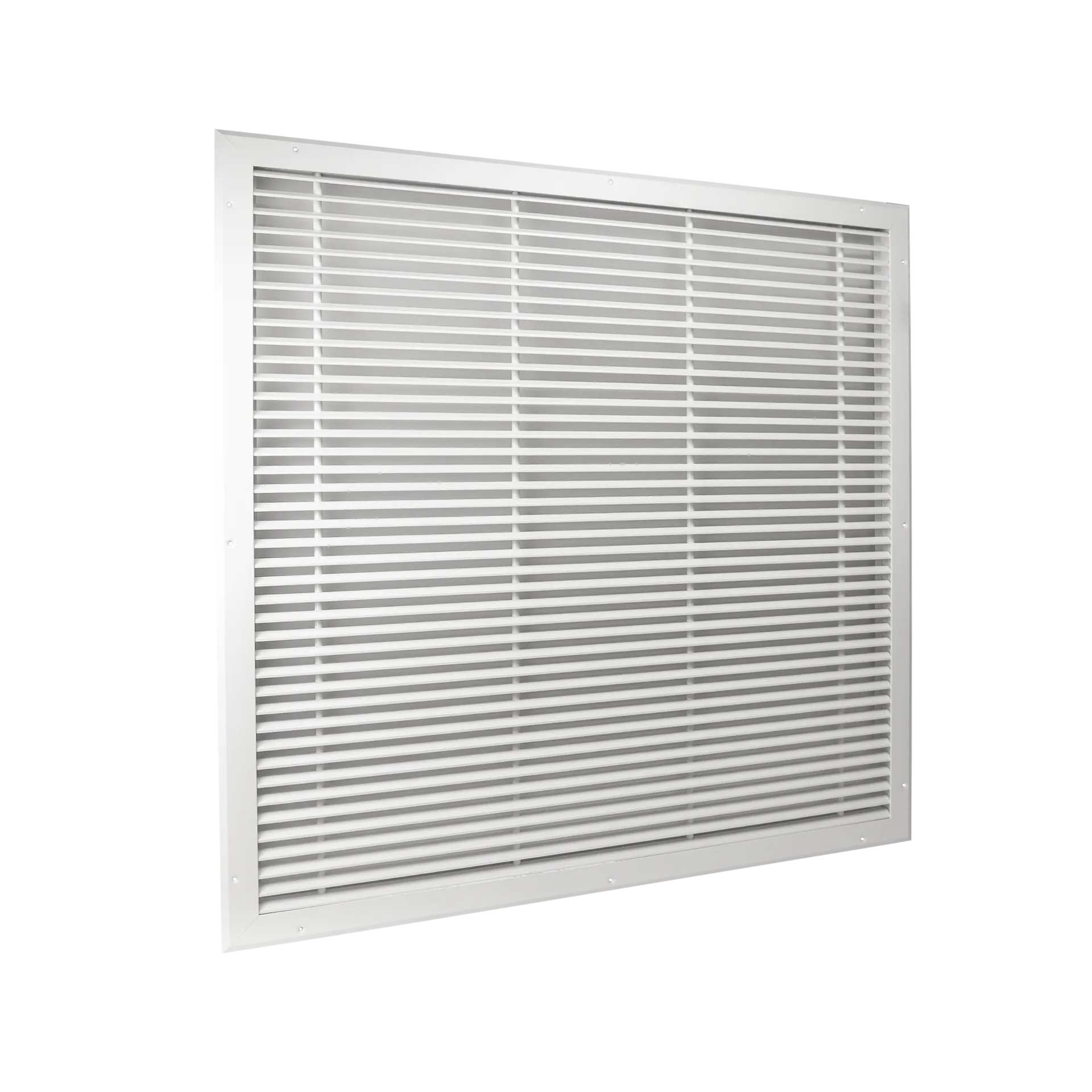 Return air linear bar grille with narrow bar spacing for high free area and architectural finish.