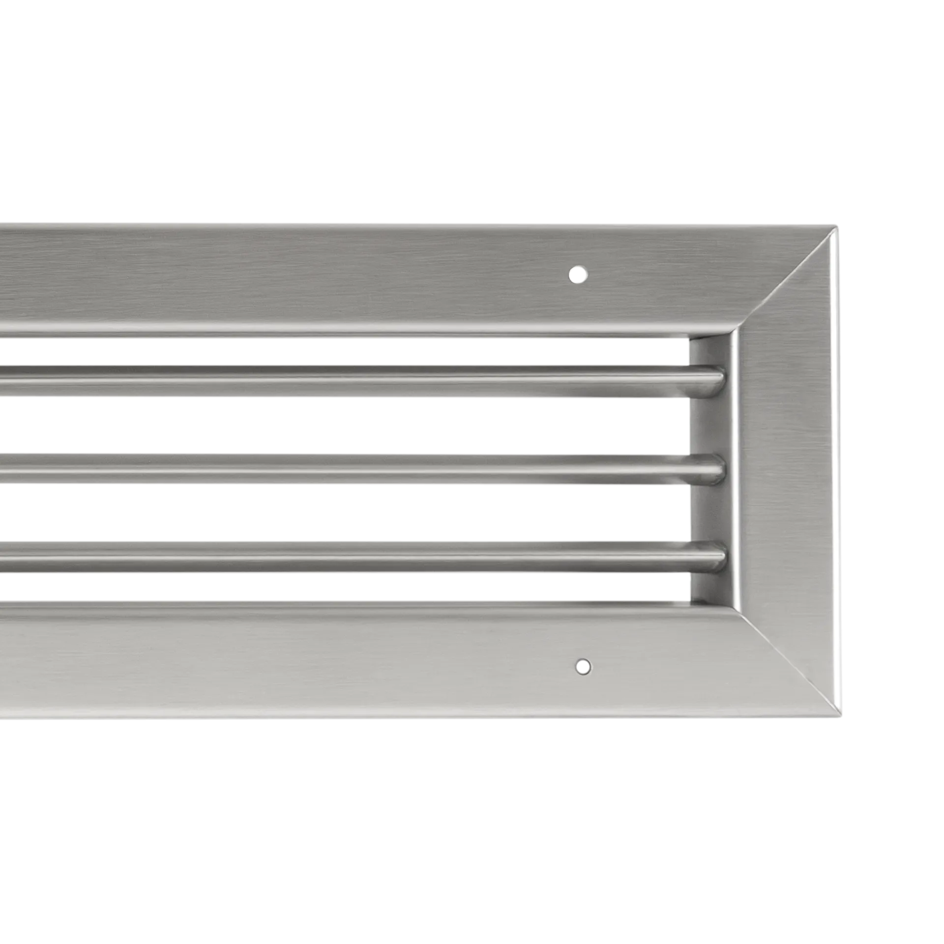 A durable stainless steel single deflection grille with individually adjustable blades for directional airflow control in demanding environments.